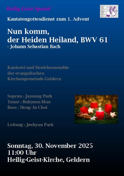 Herbstkonzert am Sonntag 11. Oktober 2026 um 17:00 Uhr in der Heilig-Geist-Kirche: Orgelkonzert / Werke von Bach, Franck, Vierne und Dupré / Orgel : Kantorin Jeehyun Park